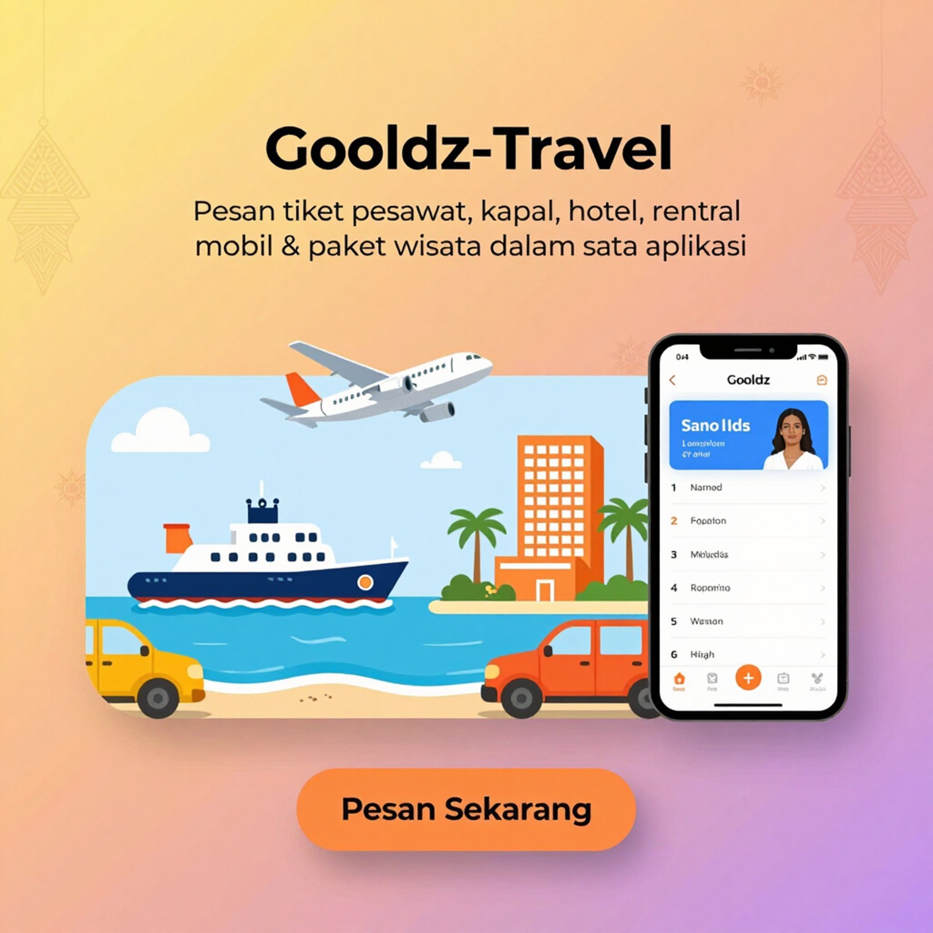 Pesan tiket, hotel, rental mobil & paket wisata dalam satu aplikasi. Praktis, cepat, dan terintegrasi dengan ekosistem Gooldz