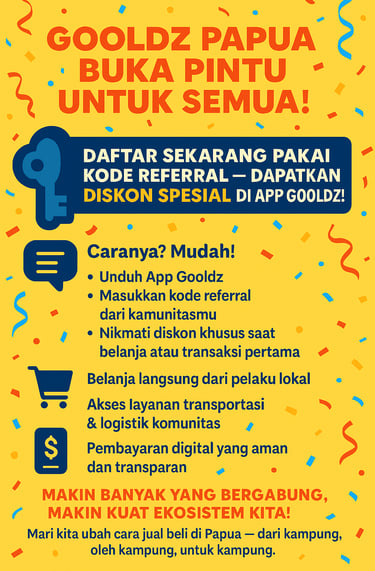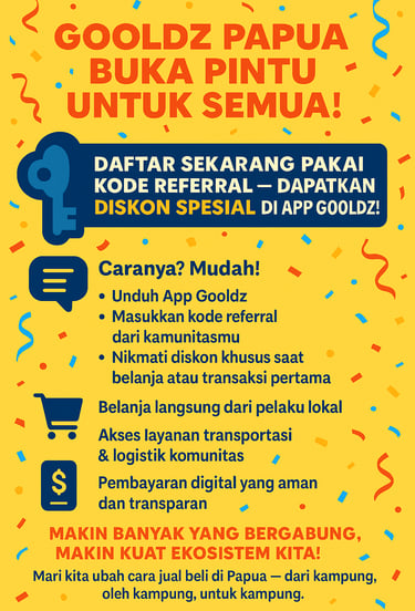 Melalui pendekatan komunitas, mitra driver GOOLDZ berasal dari masyarakat lokal Papua yang diberdayakan secara berkelanjutan. Setiap perjalanan bukan sekedar layanan transportasi, tetapi juga kontribusi nyata untuk pembangunan ekonomi Papua yang mandiri, inklusif, dan berkelanjutan