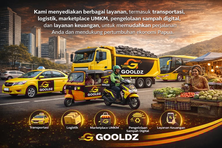 GOOLDZ Papua adalah inisiatif transportasi online berbasis komunitas yang akan mengintegrasikan kendaraan listrik, sistem reward digital, dan layanan publik jemput sampah. Kami hadir untuk menjawab tantangan mobilitas di Papua dengan solusi yang efisien, inklusif, dan berkelanjutan